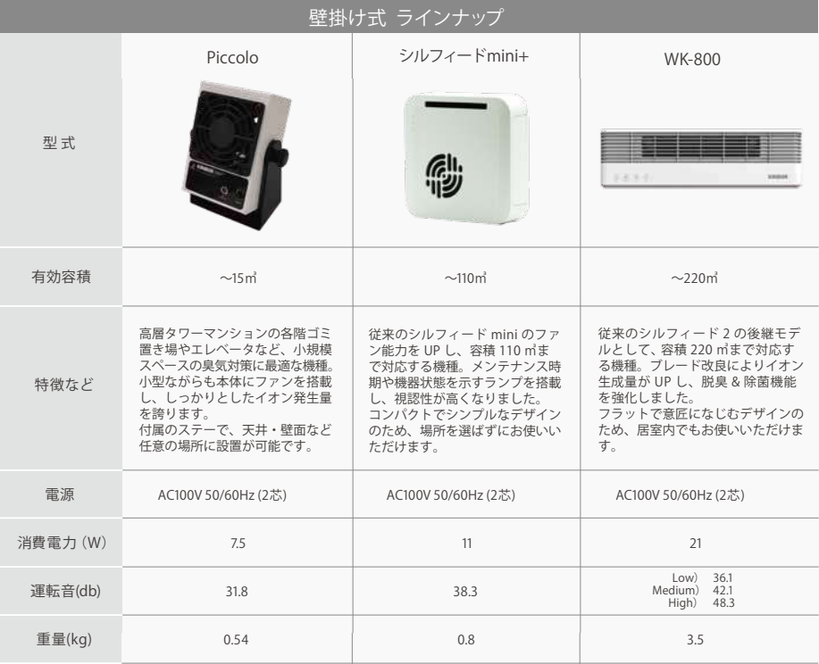 100V電源1つあればOKな設置型タイプから、空調ラインに埋め込むダクトインタイプまで、空間の広さやご希望の導入形態に合わせてご提案いたします。
